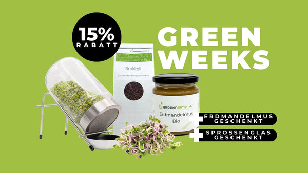 In frischen Sprossen steckt eine gehörige Portion Energie, die ausreicht, damit aus einem kleinen, unscheinbaren Keimling eine starke Pflanze heranwachsen kann. Prall gefüllt mit wertvollen Vitalstoffen, sekundären Pflanzenstoffen und Enzymen, sind Sprossen eine wahre Wohltat für unseren Organismus und sollten auf keinem Speiseplan fehlen. Mit unseren Keimgläsern haben Sie die Möglichkeit, das ganze Jahr über in den Genuss frischer Sprossen zu kommen. Damit Sie gleich mit Ihrer eigenen Aufzucht beginnen können, haben Sie bei uns zudem die Möglichkeit, neben Keimgläsern direkt auch qualitativ hochwertige Samen zu kaufen.