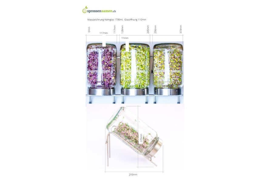 • Sprossenglas 1700ml (Keimglas) mit Unterteller & Gummifüßli – perfekt für deinen Sprossenstart
