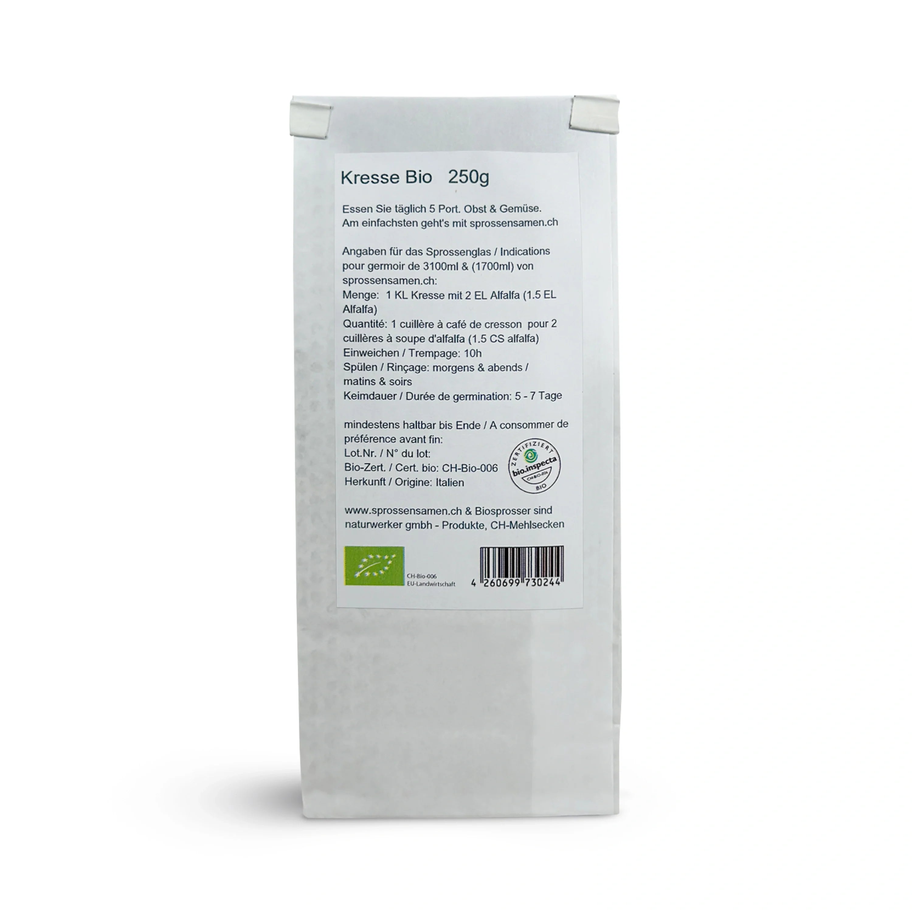 Wichtig! Kresse immer mit Rotklee oder Alfalfa ziehen, da Kresse und ebenso Rucola stark aneinander kleben, wenn sie ins Leben starten. Kresse alleine gezogen funktioniert nicht. Unsere Gewürzsamen (Kresse, Rucola) sind optimal auf die Keimdauer der Alfalfa abgestimmt.
