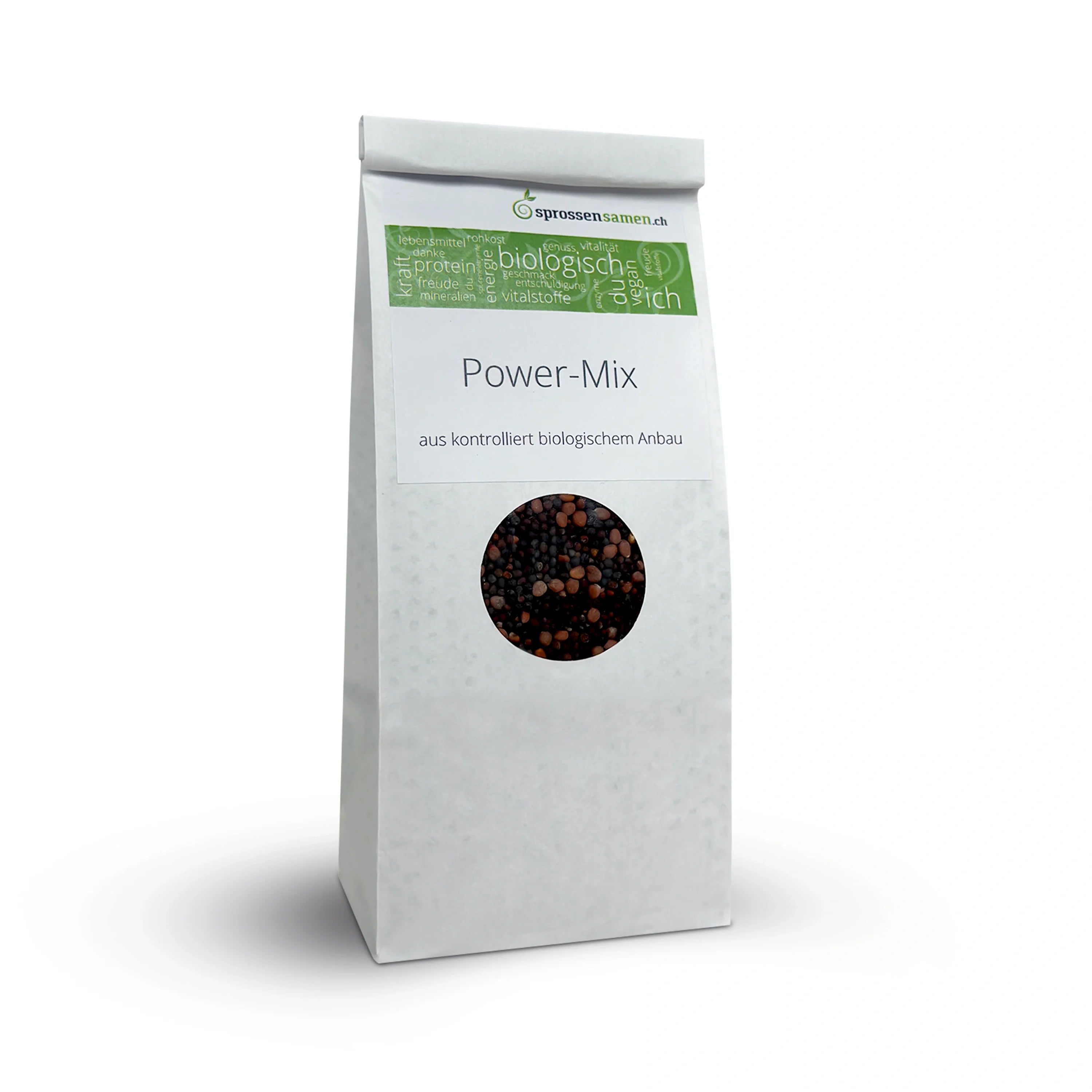 Bio Power-Mix Sprossen selber ziehen – Keimsaat & Samen für Microgreens und Sprossen. Mischung aus Samen von Kohlrabi, Raps, Radieschen & Rettich