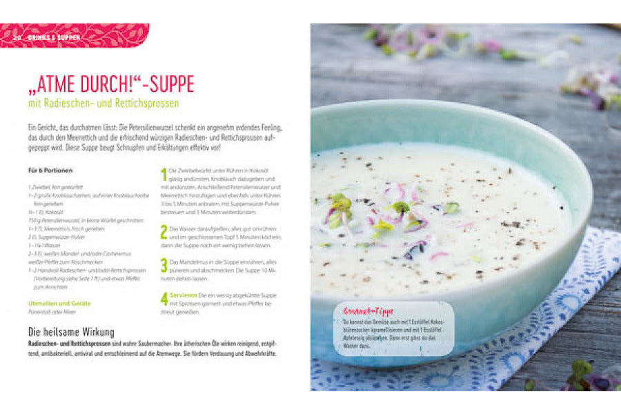 • Schnell zubereitete, kreative und rein pflanzliche Rezepte, die zeigen, zu welchen kulinarischen Höchstleistungen Sprossen in der Lage sind.