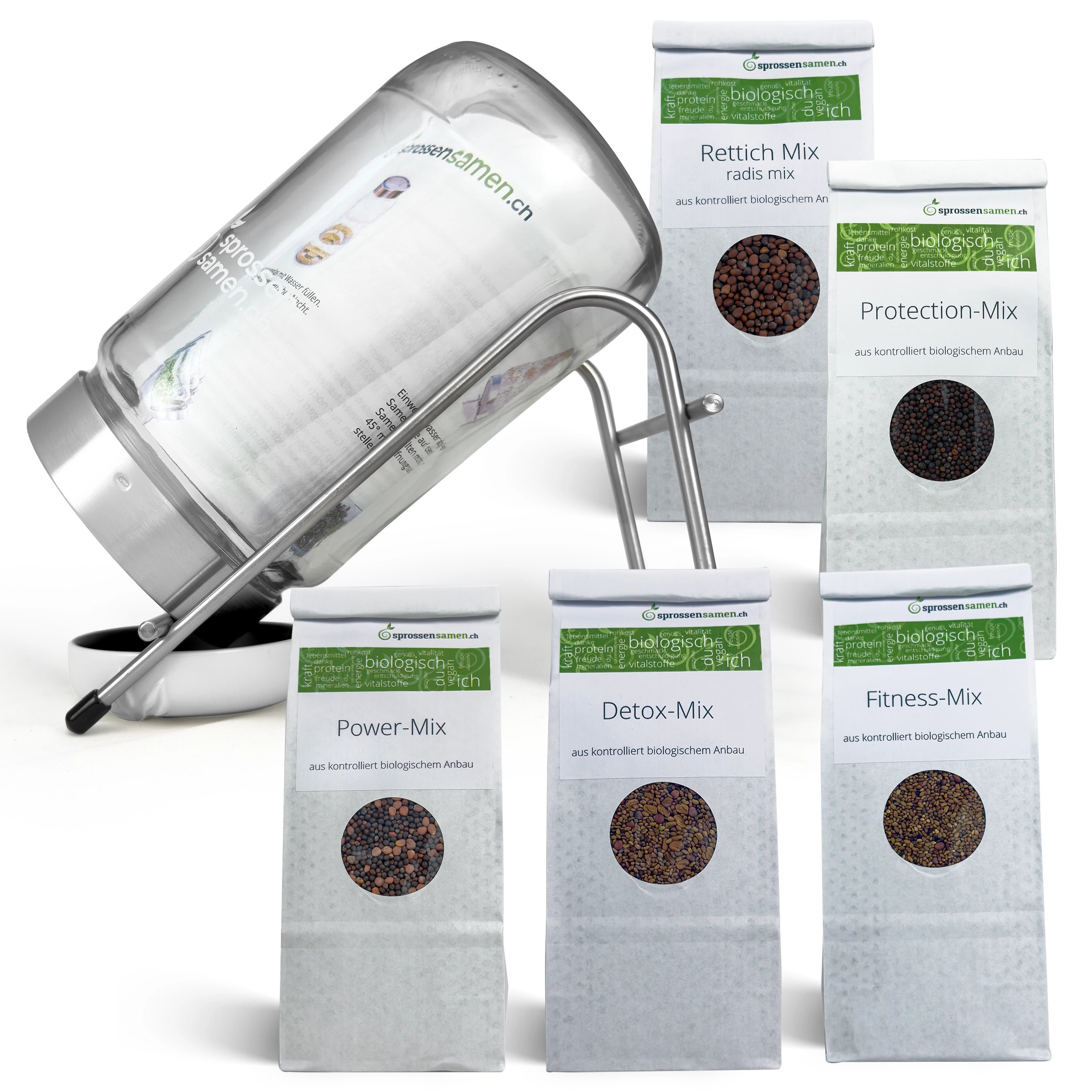 Dein Einsteiger-Set im hochwertigen Sprossenglas von sprossensamen.ch: