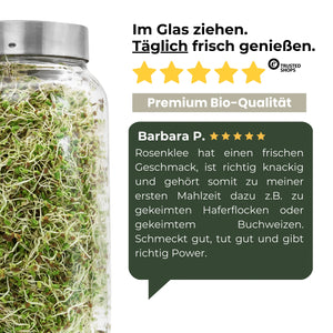5–6 Tage keimen lassen und 1–2 Mal täglich durchspülen.
