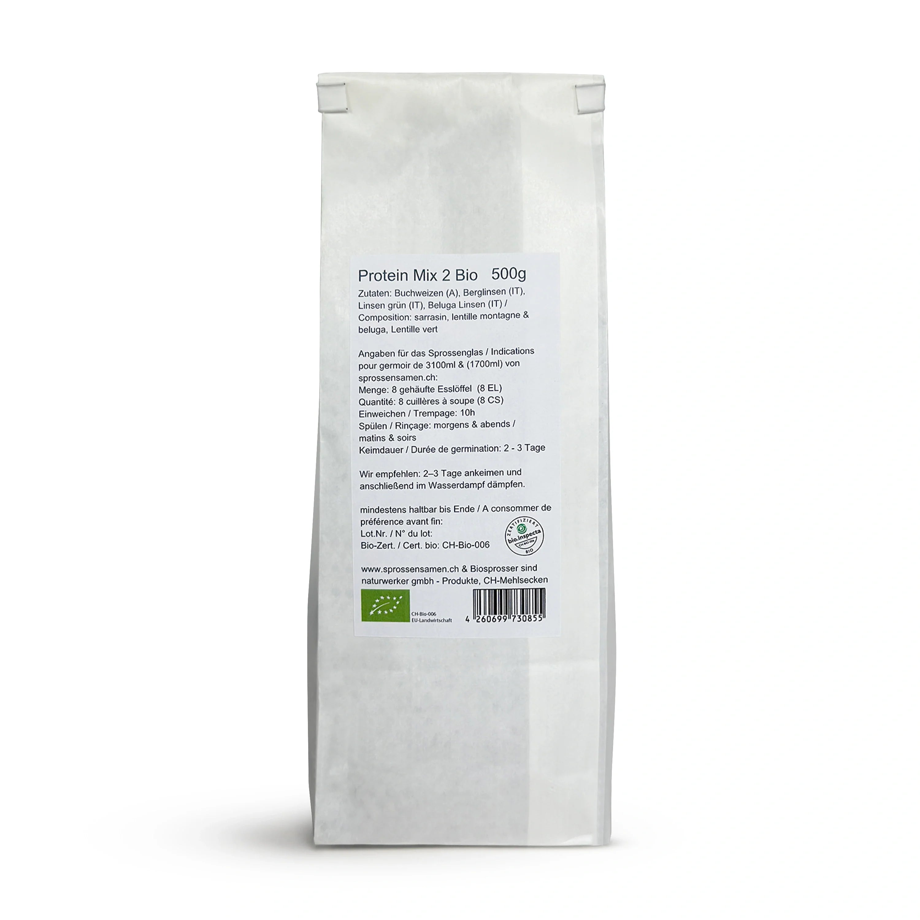 Bio Protein-Mix 2 Sprossen selber ziehen – Keimsaat & Samen für Microgreens und Sprossen. Mischung aus Samen von Buchweizen, Berglinsen, grünen Linsen & Beluga Linsen