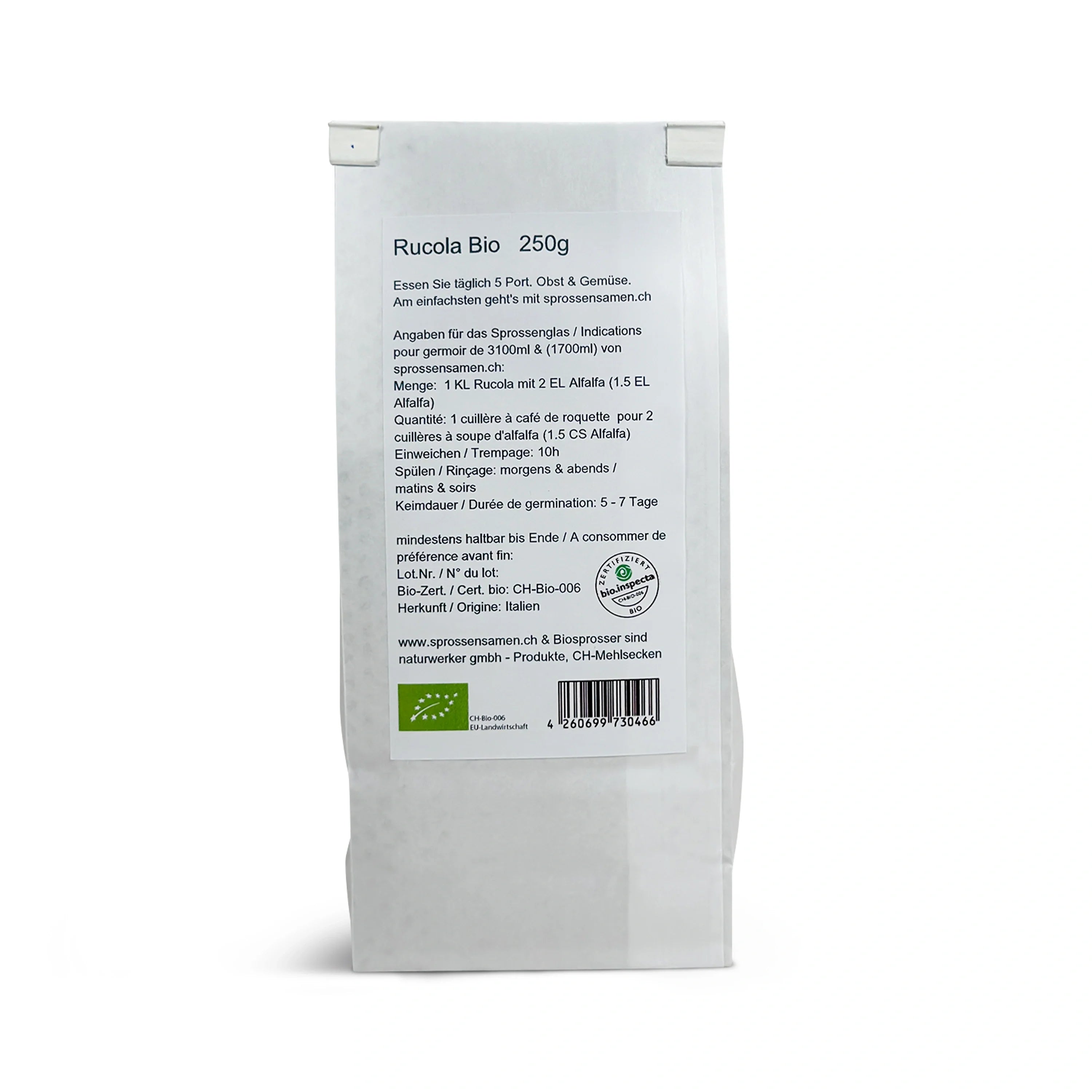 Wichtig! Rucola immer mit Rotklee oder Alfalfa Samen ziehen, da Rucola und ebenso Kresse stark aneinander kleben, wenn sie ins Leben starten. Rucola alleine gezogen funktioniert nicht. Unsere Gewürzsamen (Kresse, Rucola) sind optimal auf die Keimdauer der Alfalfa Sprossen abgestimmt.