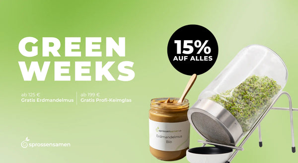 Durchstöbere das Sortiment. Samen, Pulver, Keimgläser – alles ist rabattiert. Kombiniere, wie es passt.
