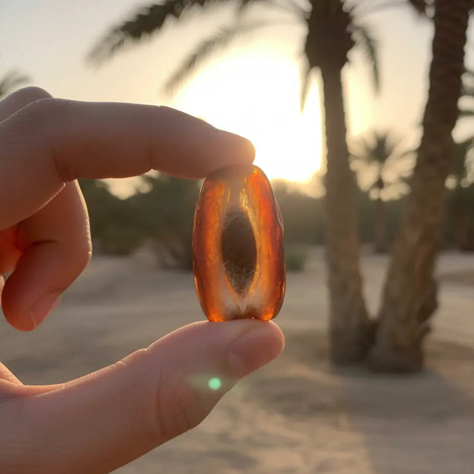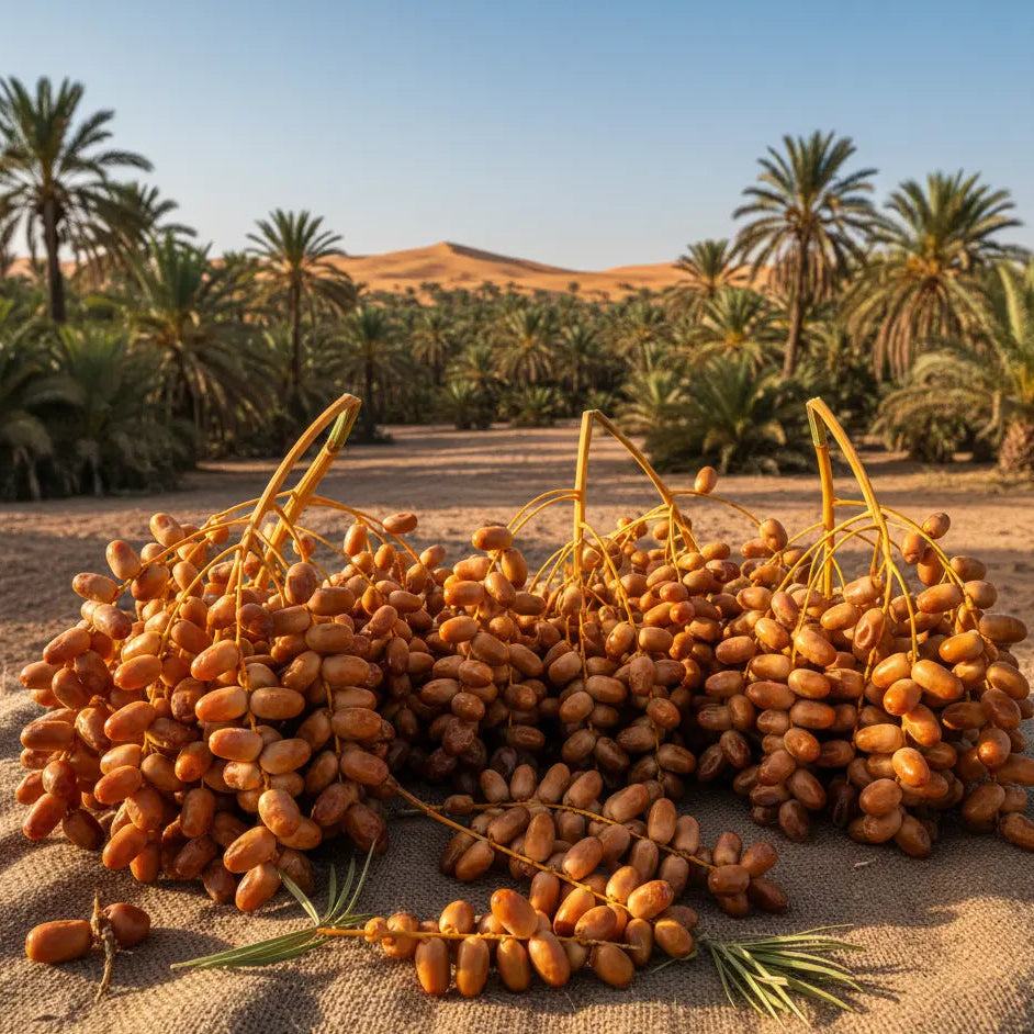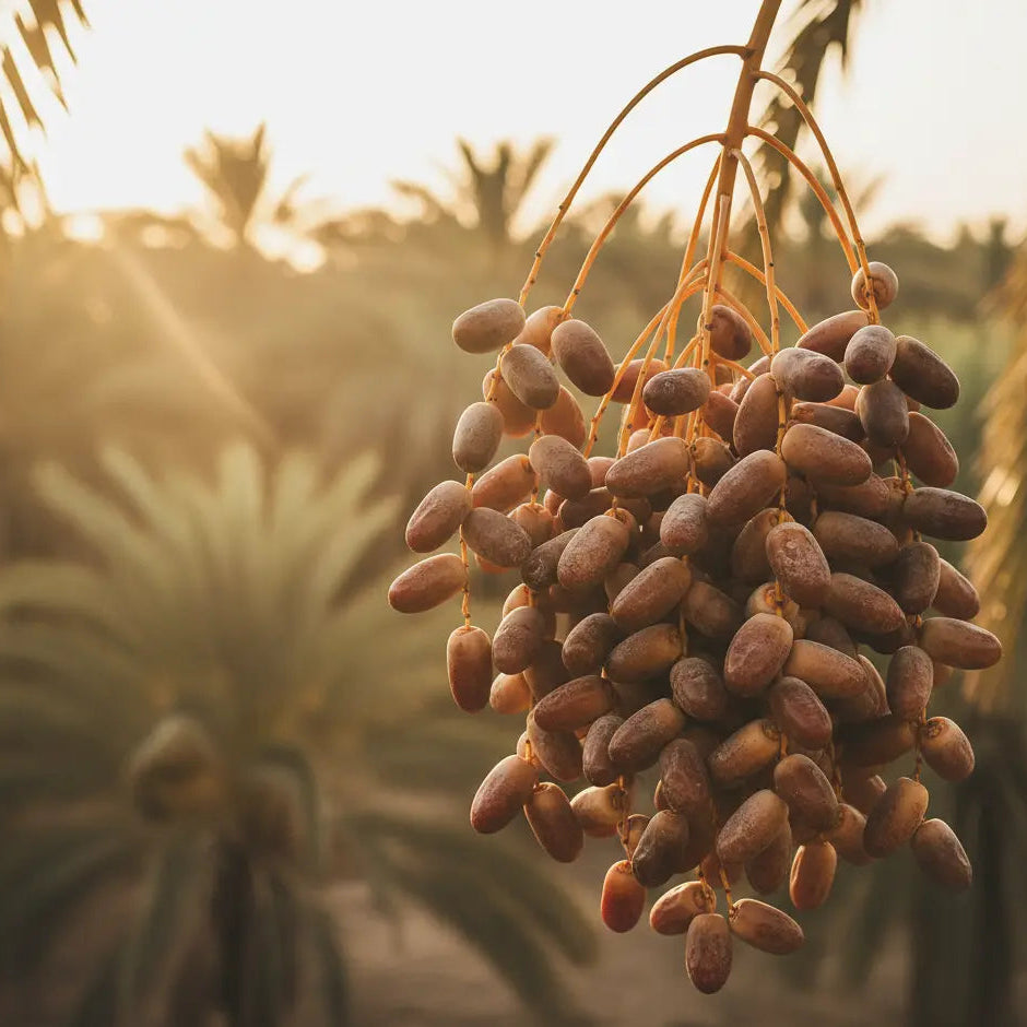 Deglet-Nour-Datteln kommen aus dem Tolga-Tal in Algerien, einer Oasenregion mit leicht erhöhter Luftfeuchtigkeit, die verhindert, dass die Früchte beim Reifen austrocknen. Genau dieses Mikroklima macht den Unterschied: Die Datteln bleiben weich, saftig und voll natürlicher Honigsüßeunbehandelt, so wie sie am Baum gewachsen sind.